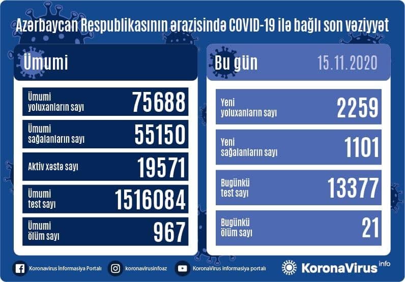 Bu gün Azərbaycanda koronavirusa yoluxanların sayı 2 mini keçdi
