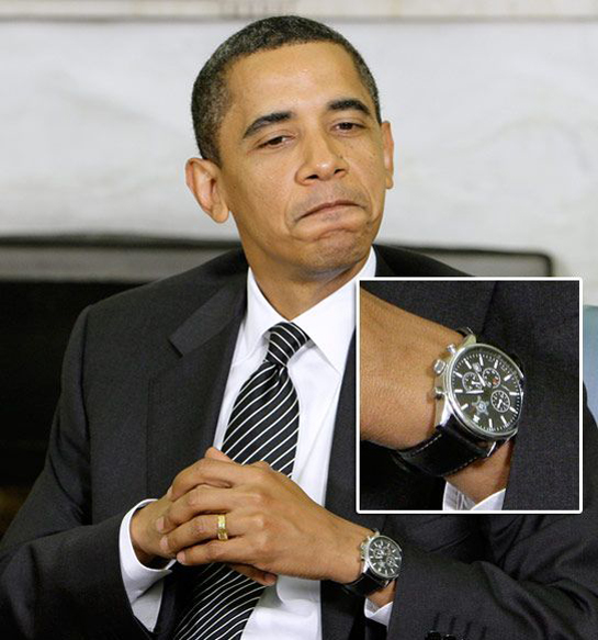 Amerika Birləşmiş Ştatlarının prezidenti Barak Obama da sadə saatlara üstünlük verir. Sıravi amerikalılardan seçilmək istəməyən Amerika prezidenti idman üslubunda olan “Jorg Gray 6500” saatı ilə vaxtı izləyir. Bu saatların qiyməti 200-300 dollar arasındadır.
