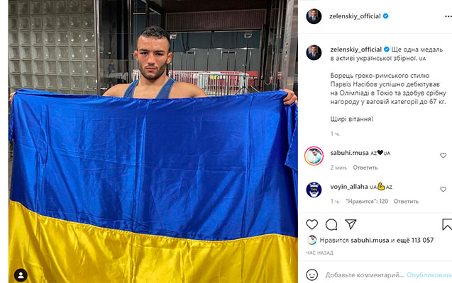 Zelenski paylaşımda bunları yazıb: "Ukrayna üçün daha bir medal...Yunan-Roma güləşçisi Pərviz Nəsibov Olimpiadada uğurlu çıxış edib gümüş medal qazandı. Səmimi təbriklərimi çatdırıram”.