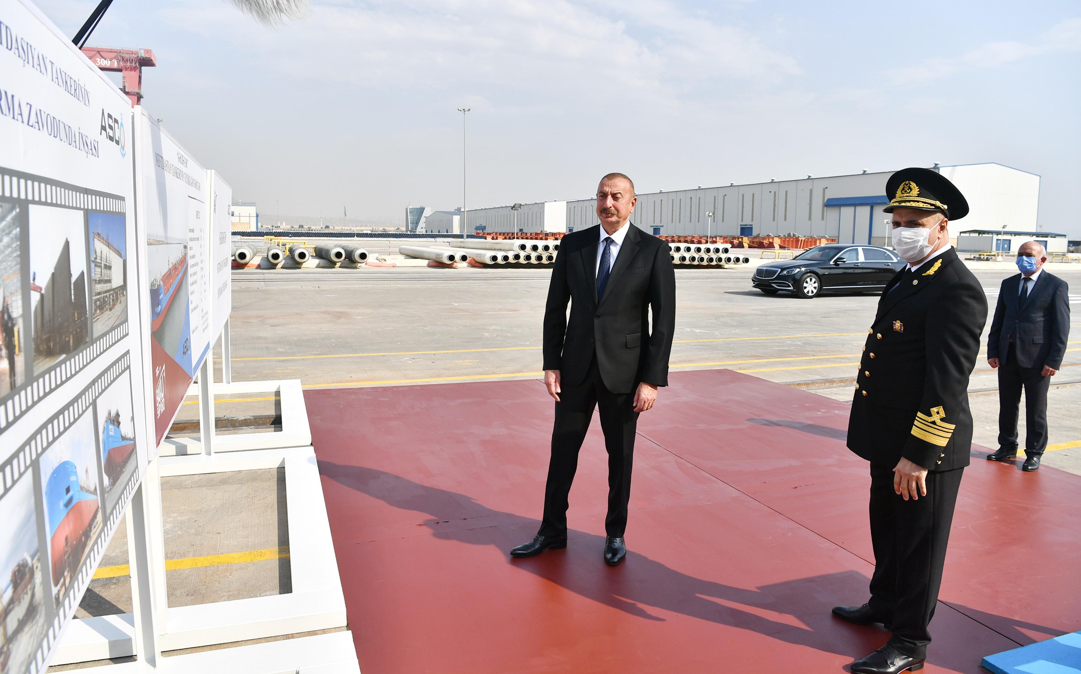 Dövlətimizin başçısı tankerin istifadəyə verilməsini bildirən rəmzi lenti kəsdi.