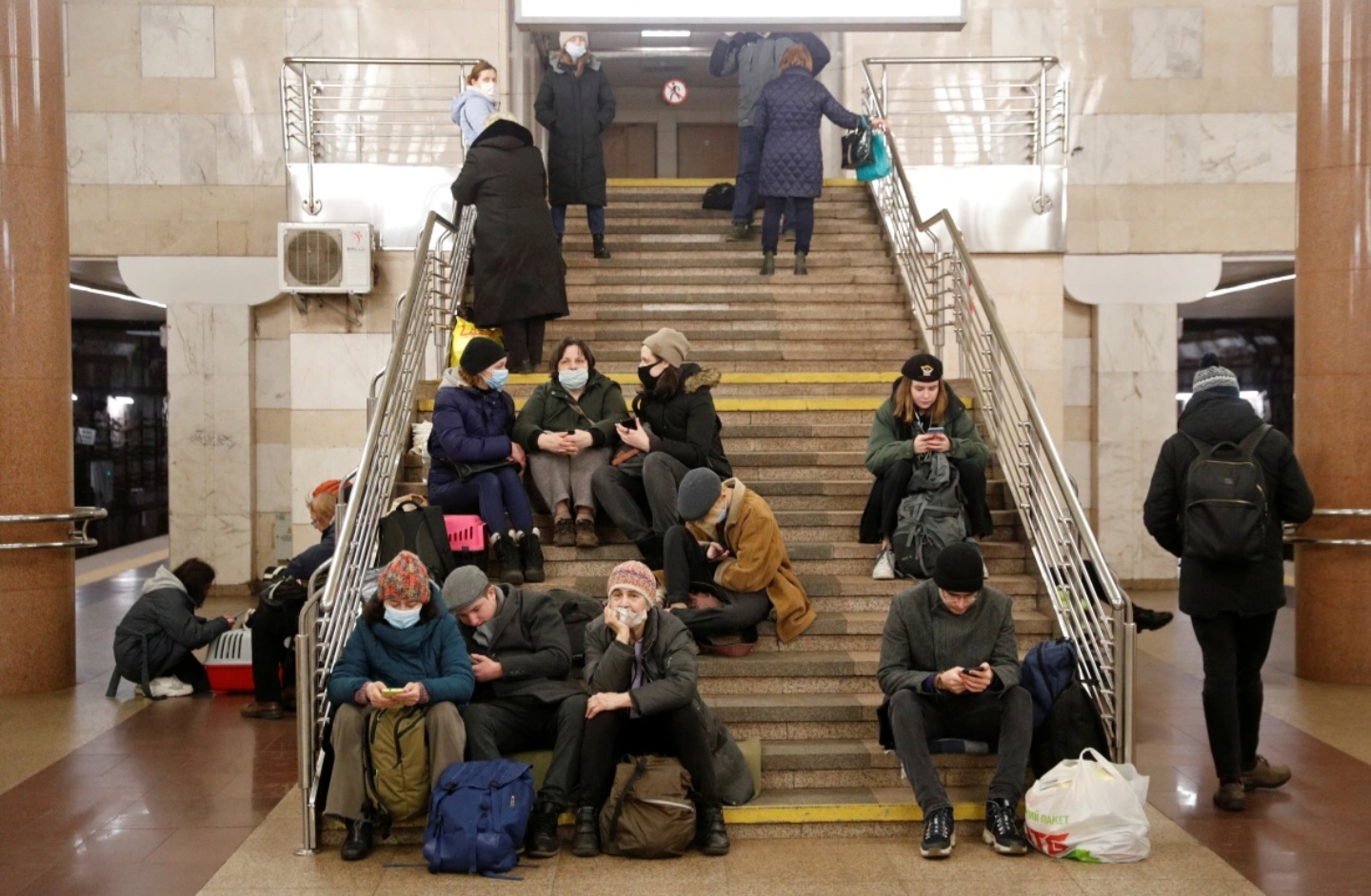 İnsanlar Kiyevdə metro stansiyasına sığınırlar. (Valentin Ogirenko/Reuters)