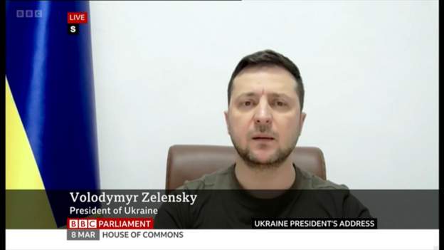 Ukrayna prezidenti Vladimir Zelenski Britaniyanın icmalar palatasında çıxış edib.