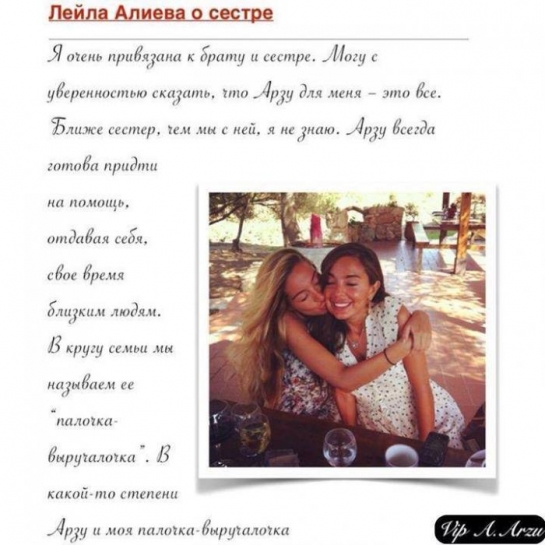 Axşam.az xəbər verir ki, Arzu Əliyevaya olan sevgisini ifadə edən L.Əliyeva onu “sehirli çubuq” adlandırıb:“Mən bacıma və qardaşıma çox bağlıyam. Əminliklə deyə bilərəm ki, Arzu mənim hər şeyimdir. Bizim qədər bir-birinə yaxın olan bacılar tanımıram. Arzu həmişə köməyə çatmağa, özünü və vaxtını yaxınlarına fəda etməyə hazırdır. Ailə içində biz onu “sehirli çubuq” adlandırırıq. Arzu həm də mənim “sehirli çubuğum”dur”. ANNET.Az