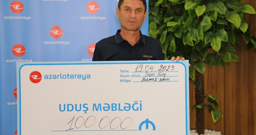 Ölkənin qanuni və yeganə lotereya təşkilatçısı "Azərlotereya” ASC-də növbəti böyük uduş qazanılıb. "Super Keno" lotereyasının 23163 nömrəli tirajında 100 000 manat udulub.