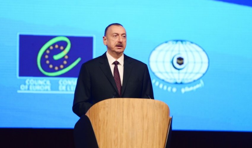 Prezident İlham Əliyev qeyd edib ki, 2008-ci ildə Azərbaycanın təşəbbüsü ilə "Bakı prosesi” başlayıb: "Bizim təşəbbüsümüz idi ki, Avropa Şurasının mədəniyyət nazirlərinin iclasına İslam Əməkdaşlıq Təşkilatının nazirləri dəvət edilsin. Bu, ilk belə hal idi. Çünki Azərbaycan hər iki təşkilata üzv olan azsaylı ölkələrdəndir. Daha sonra - 2009-cu ildə İslam Əməkdaşlıq Təşkilatı mədəniyyət nazirlərinin iclasına Avropa Şurası mədəniyyət nazirləri dəvət edildi. Bunlar bizim təşəbbüslərimiz idi və artıq buna "Bakı prosesi” adı verilib. Bu gün mədəniyyətlərarası və sivilizasiyalararası dialoq, multikulturalizmə aid məsələlər "Bakı prosesi”nə daxildir. Biz səylərimizi davam etdirəcəyik və 100-dən artıq dövlətdən olan nümayəndələrin Bakıya səfər edərək bu mühüm məsələləri müzakirə etməsi bizdə məqsədlərimizə nail olmaqla bağlı ruh yüksəkliyi yaradır. Biz dostluq, sülh, tərəfdaşlıq və mədəni müxtəliflik məsələlərinə töhfəmizi verməyə calışacağıq”.