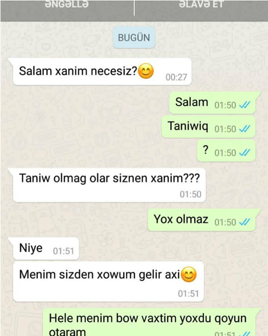 ""WhatsApp”da bu gün” layihəsi maraqlı "WhatsApp” yazışmalarını təqdim etməkdə davam edir.