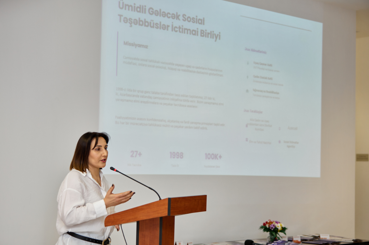 Kamala Ashumova, Head of “Ümidli Gələcək” Public Association, then offered the participants a detailed overview of the “Women Hotline” activities.