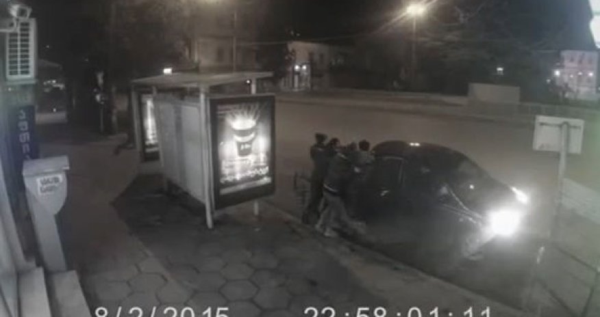 В грузинских соцсетях распространяется запись с камеры наблюдения, где видно, как три девушки затаскивают в свою машину молодого человека, который стоит на автобусной остановке.